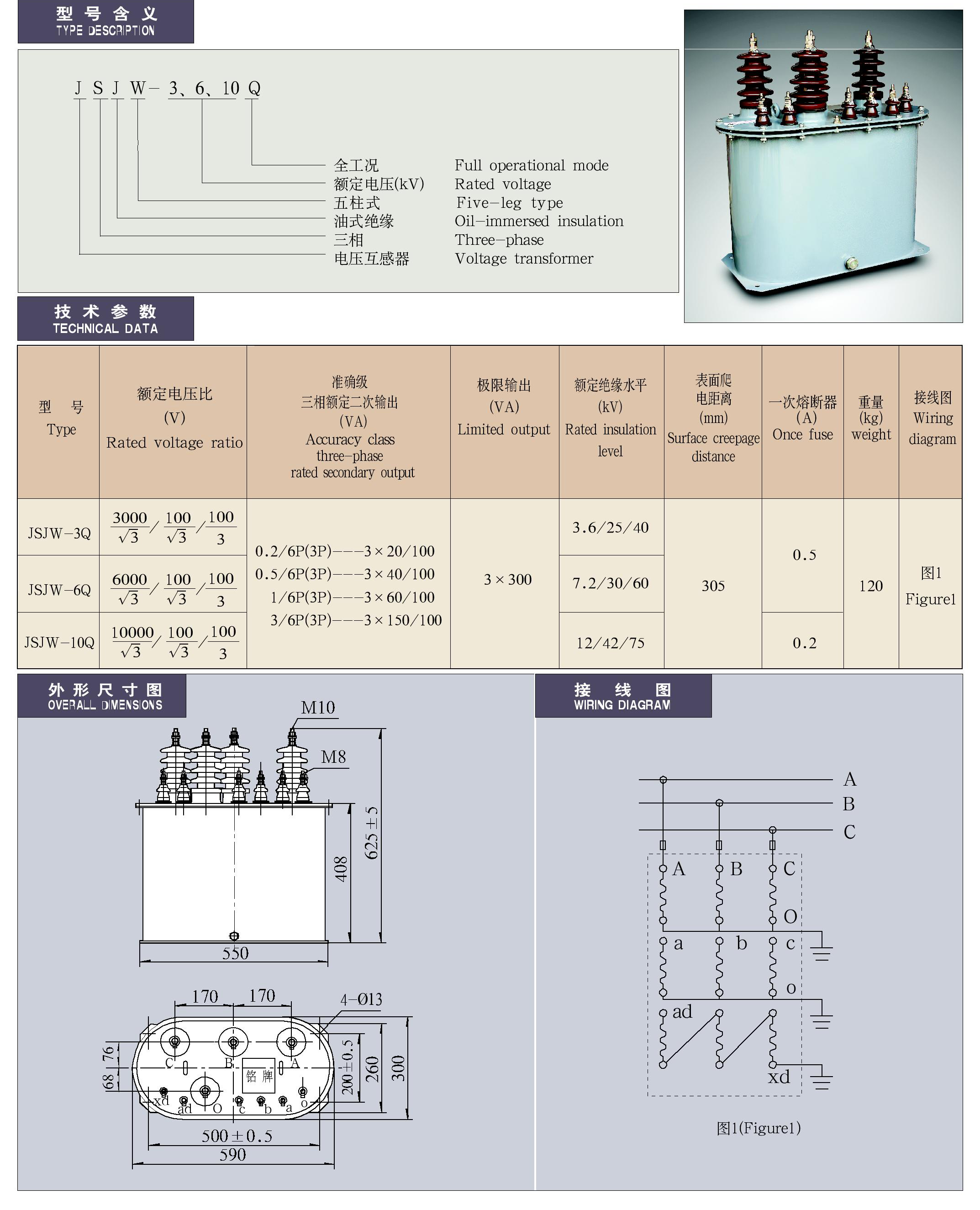 JSJW-3、6、10Q型油浸式户内三相五柱电压互感器
