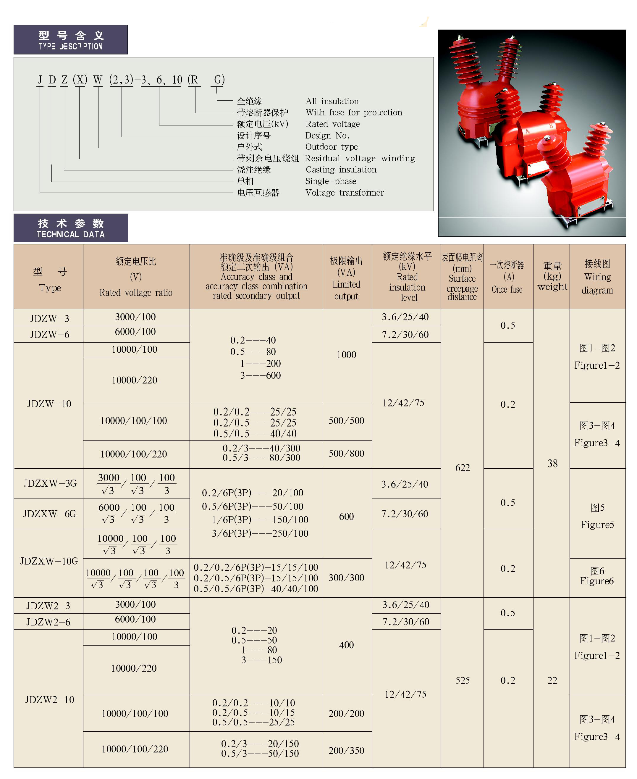 - JDZW-3、6、10 JDZXW-3、6、10G JDZW2-3、6、10 JDZW-3、6、10R JDZXW-3、6、10RG系列户外单相电压互感器