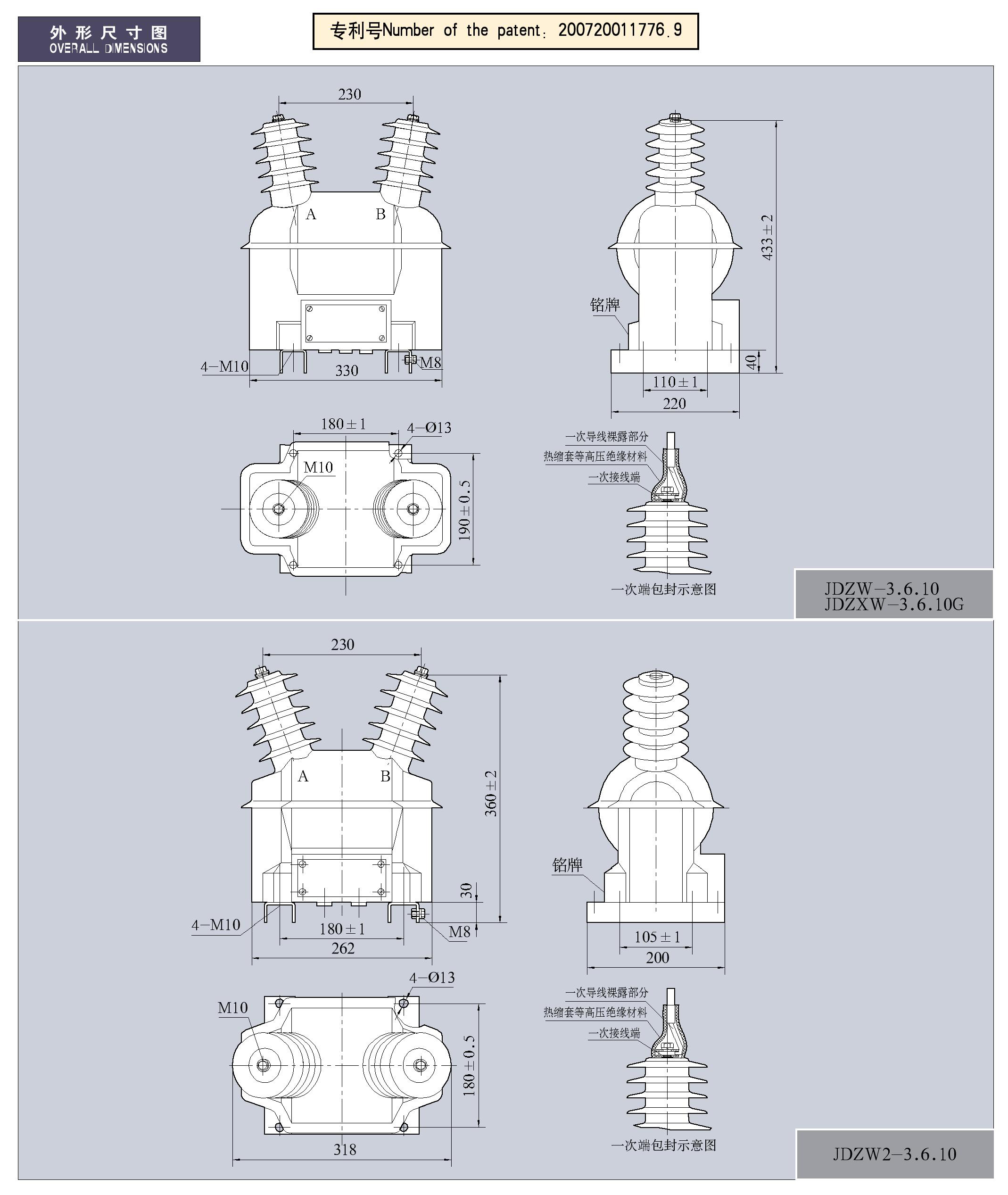 JDZW-3、6、10 JDZXW-3、6、10G JDZW2-3、6、10 JDZW-3、6、10R JDZXW-3、6、10RG系列户外单相电压互感器