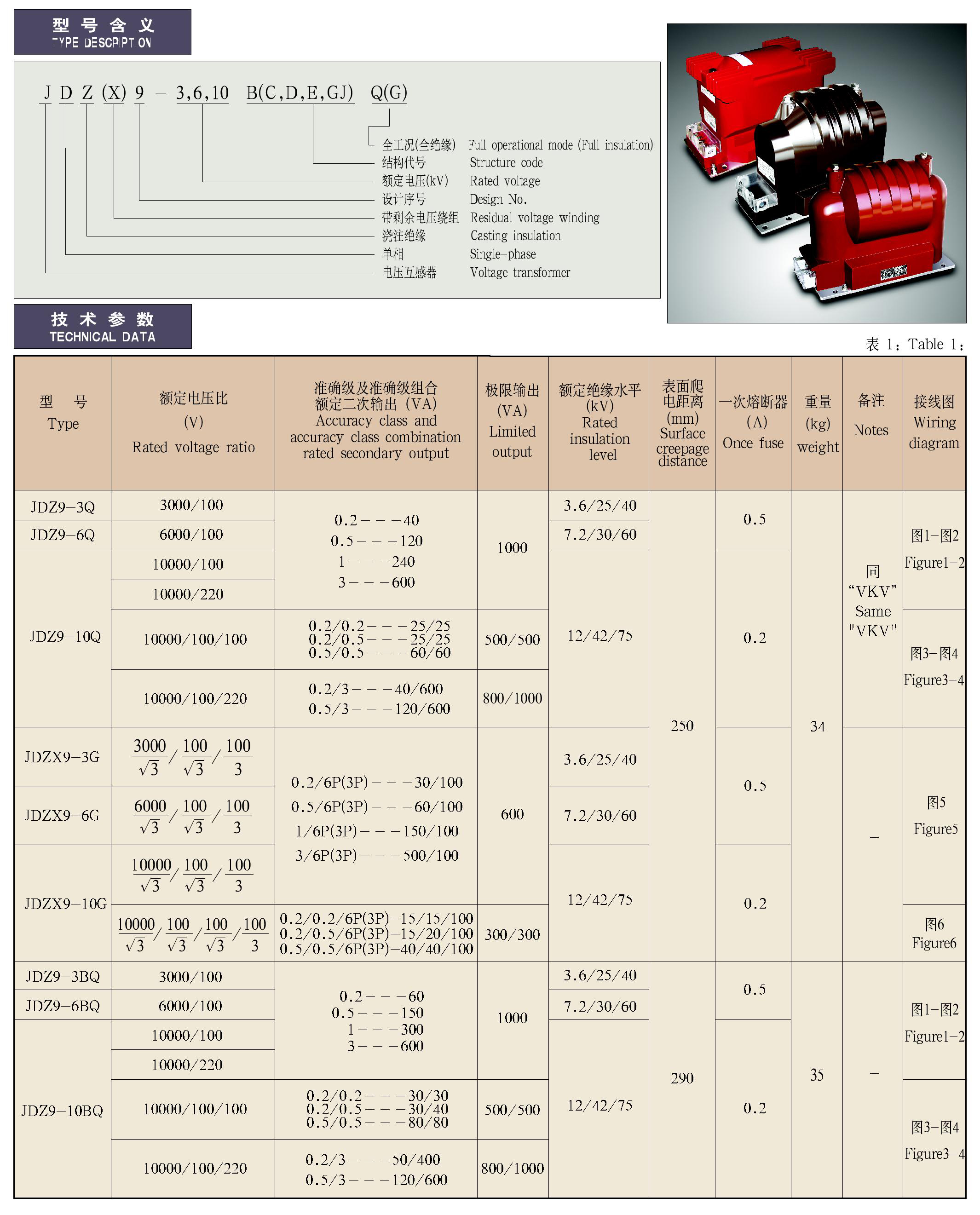 - JDZ(X)9-3、6、10B(C、D、E、GJ)Q(G)型全封闭户内单相电压互感器