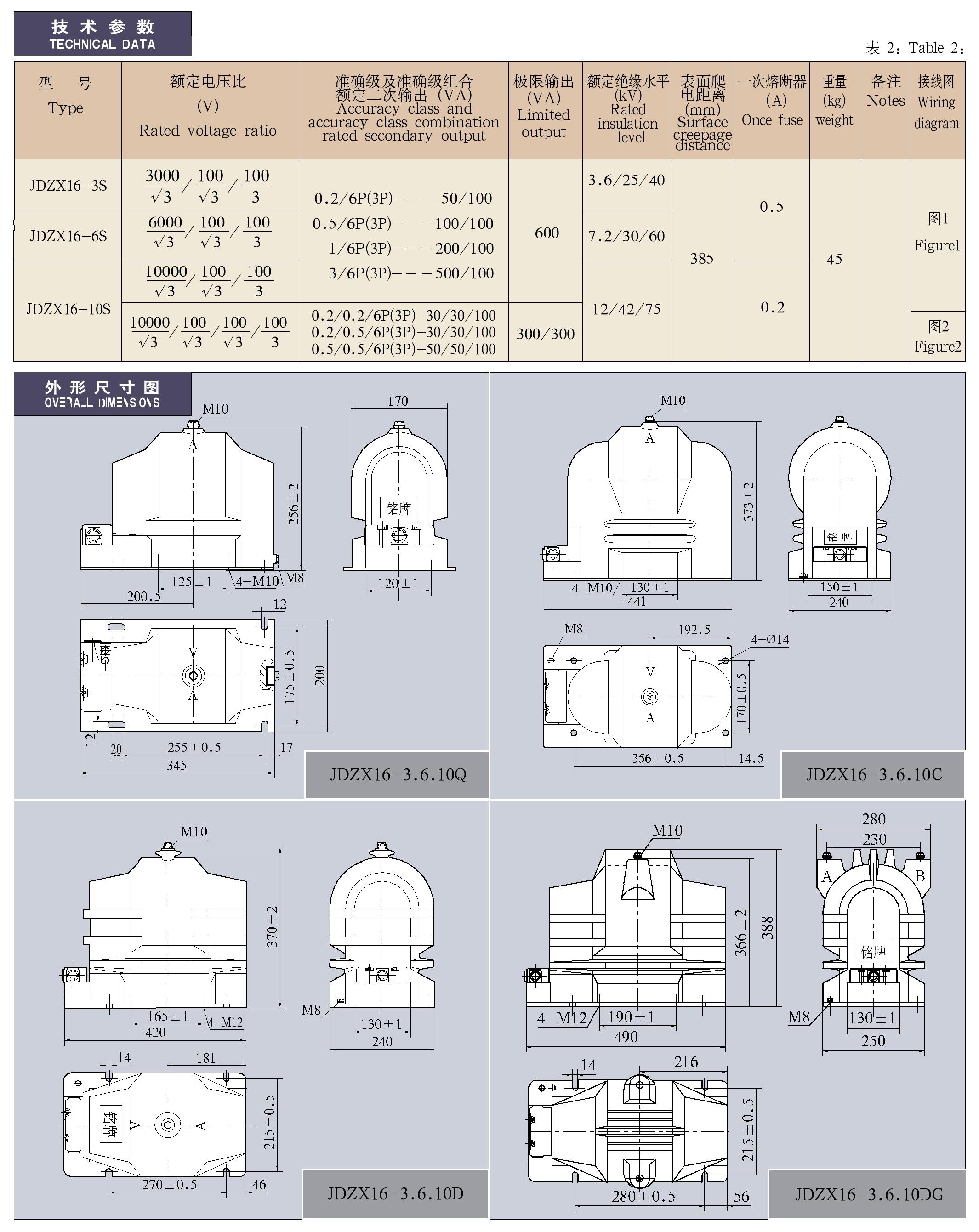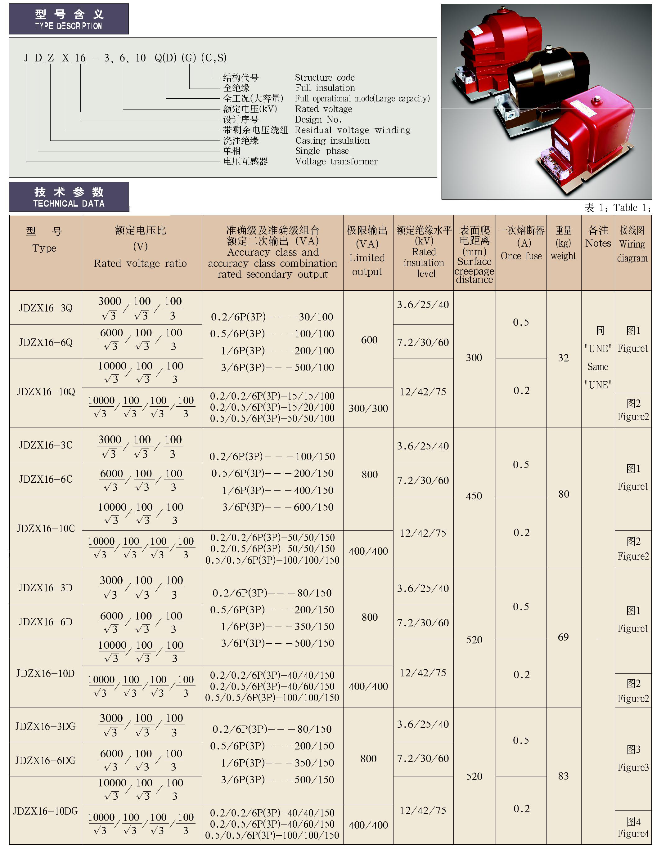JDZX16-3、6、10Q(D)(G)(C、S)系列全封闭户内单相电压互感器