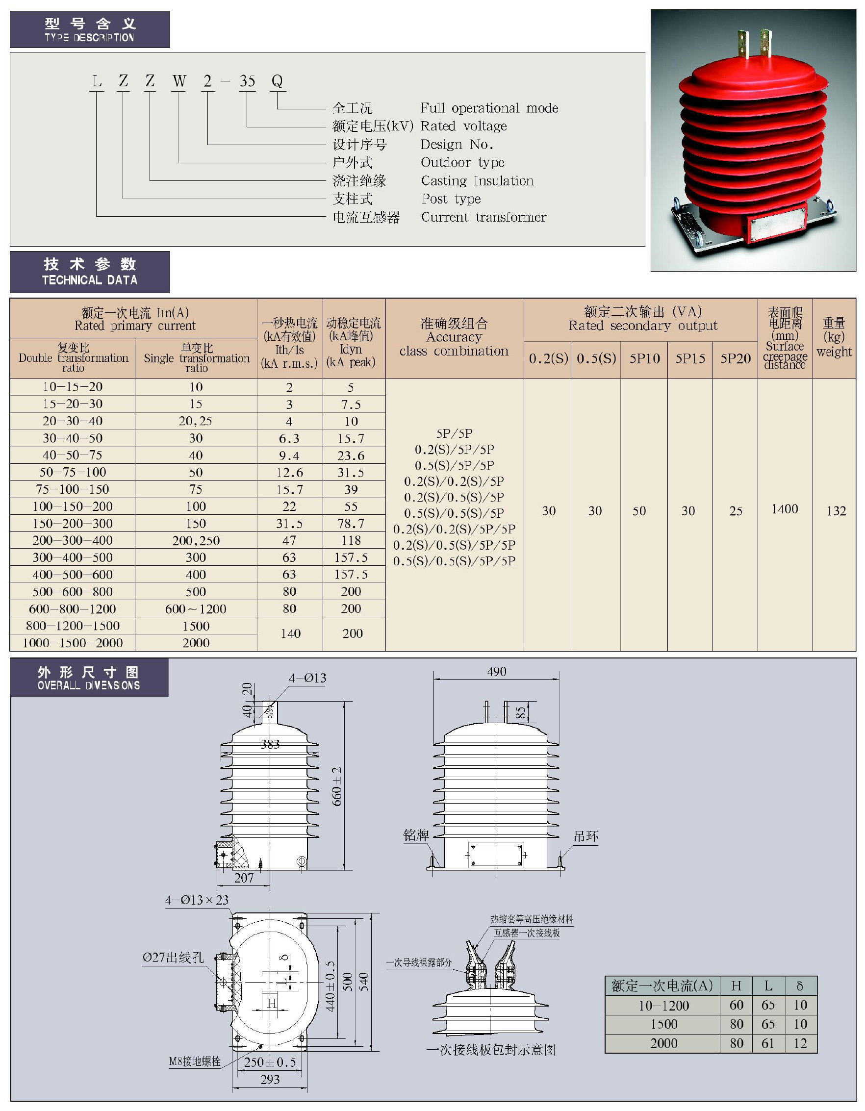 LVB(T)1-35(W1、W2、W3)型油浸式户外单相电流互感器