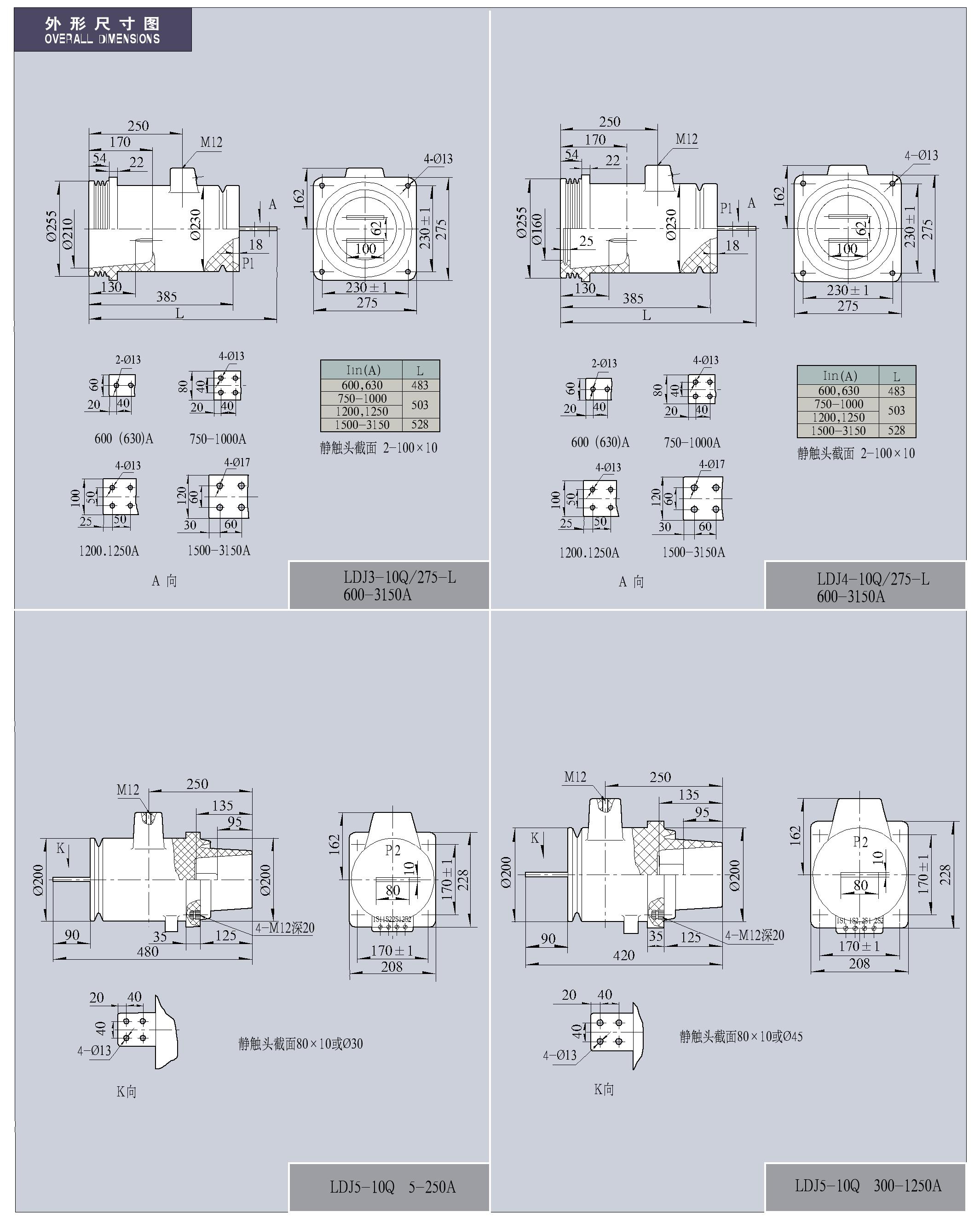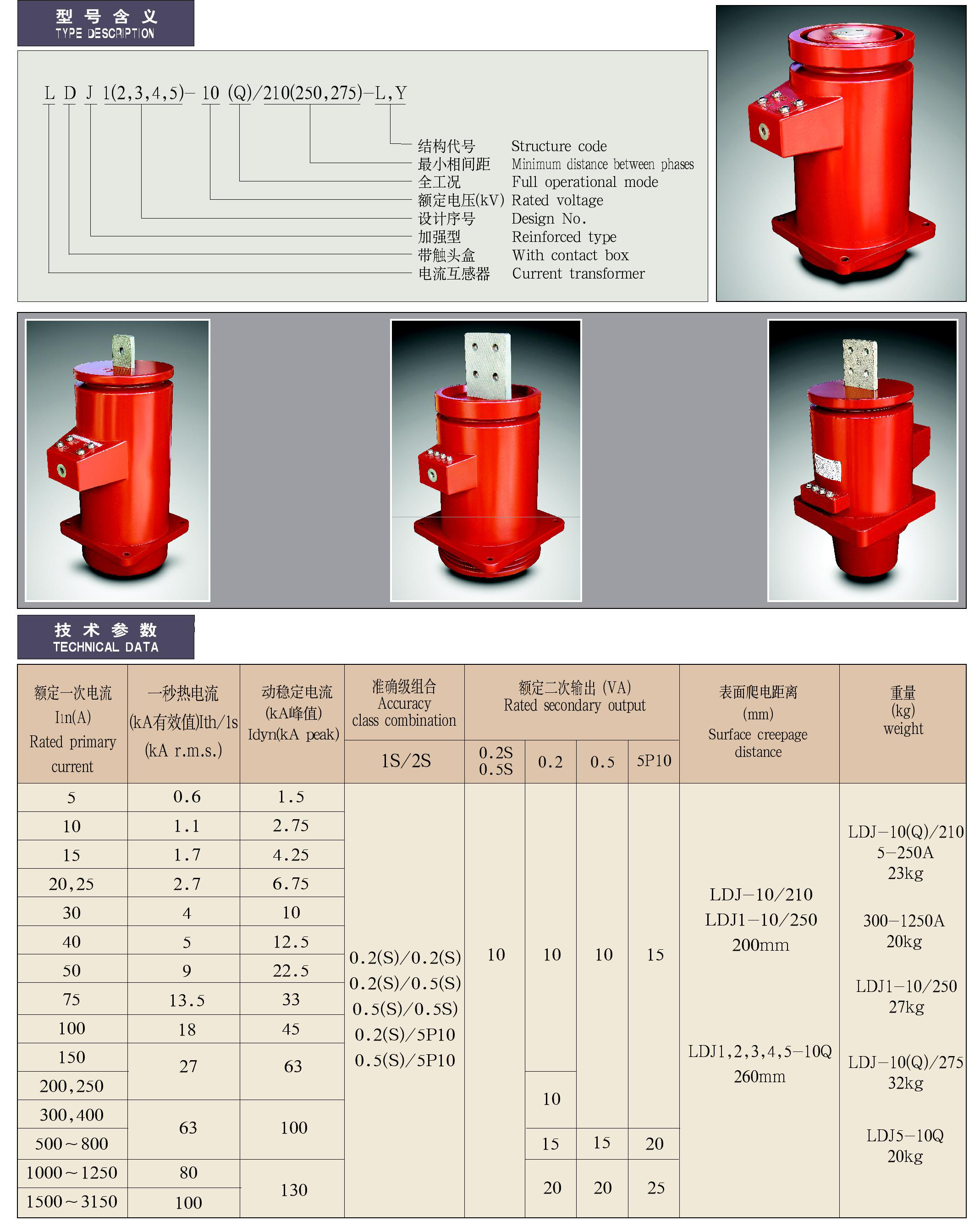 - LDJ1(2、3、4、5)-10(Q)/210(250、275)-L、Y系列电流互感器