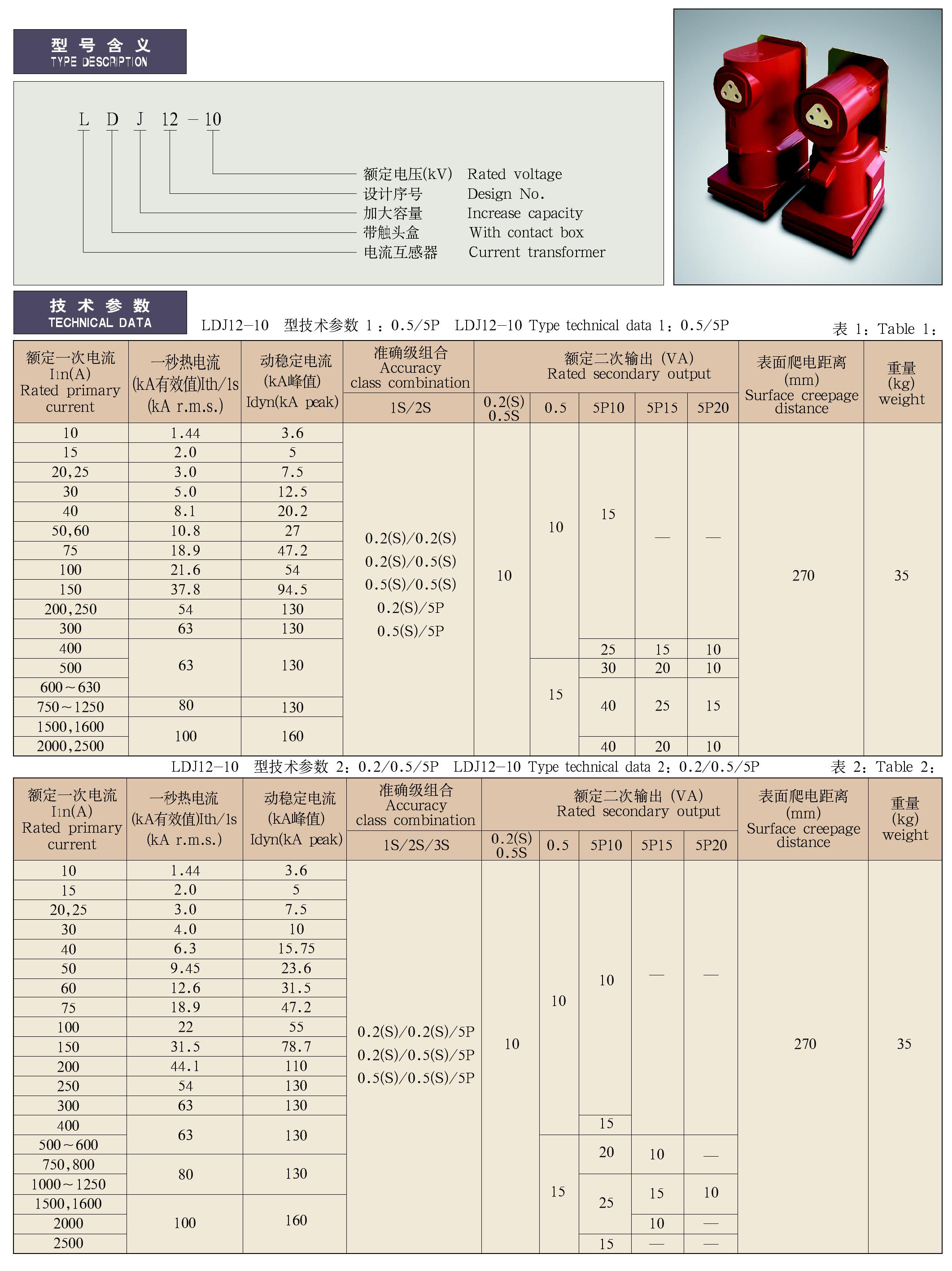 - LDJ12-10型电流互感器及其配套触头盒