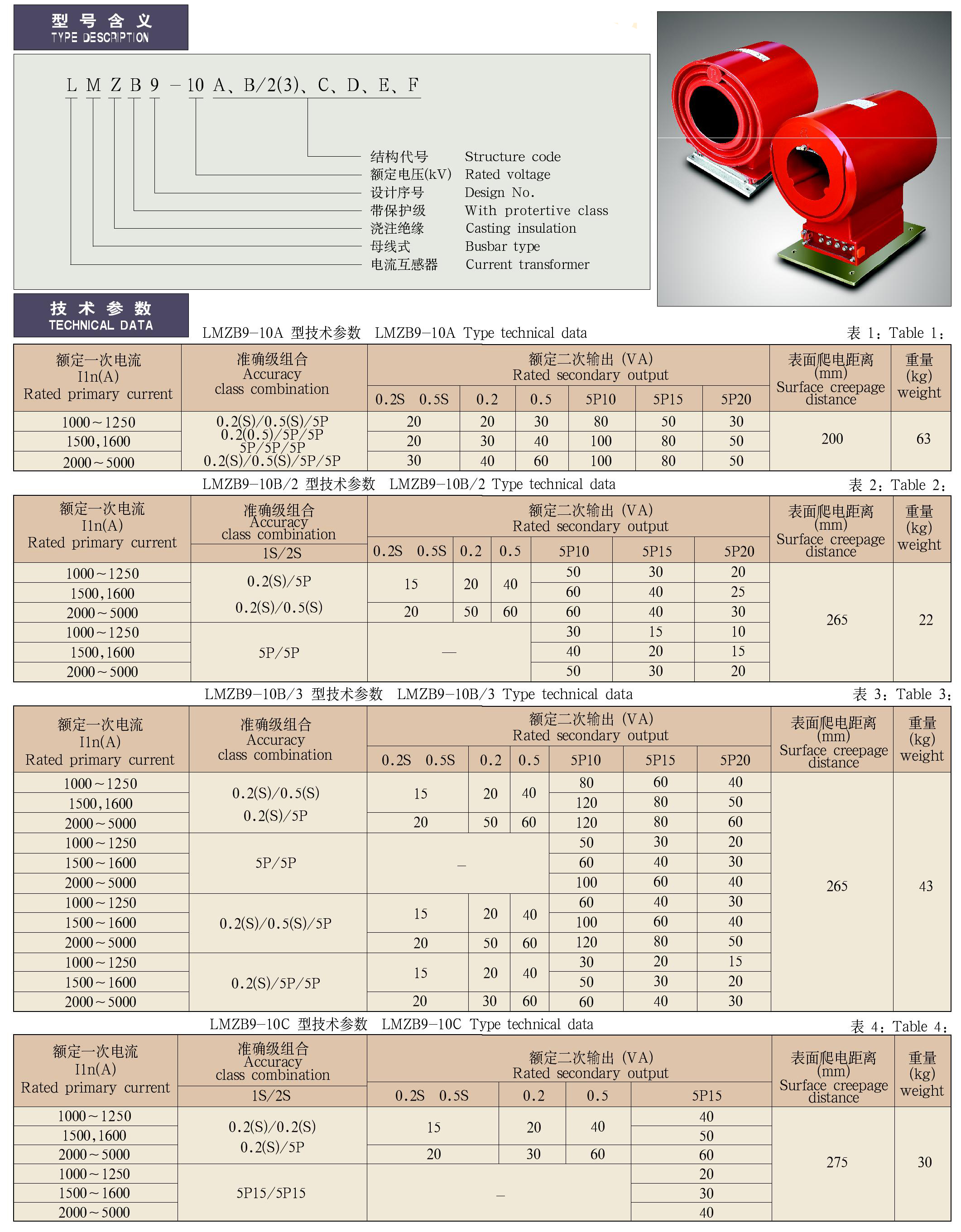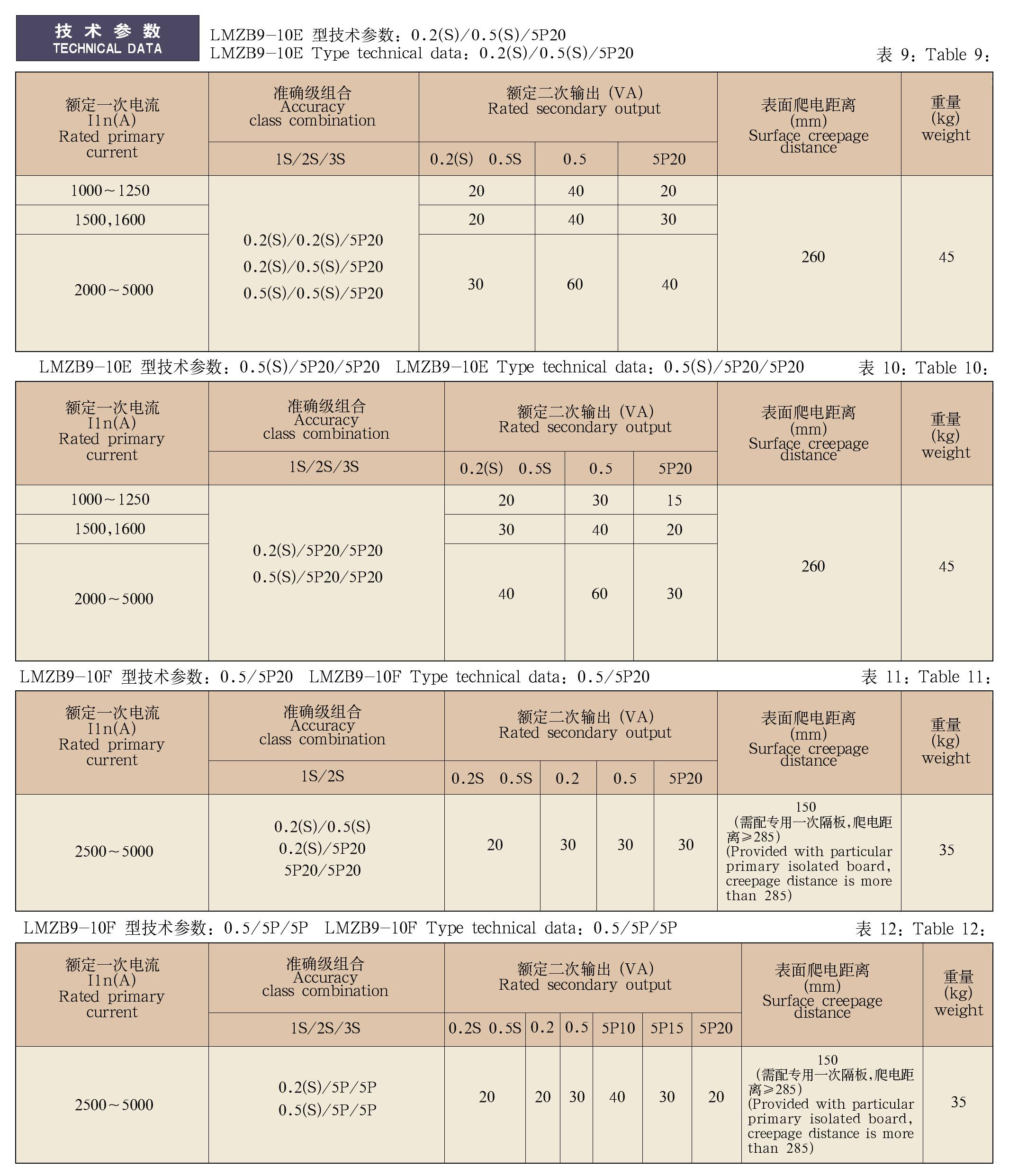 - LMZB9-10A、B/2(3)、C、D、E、F系列电流互感器