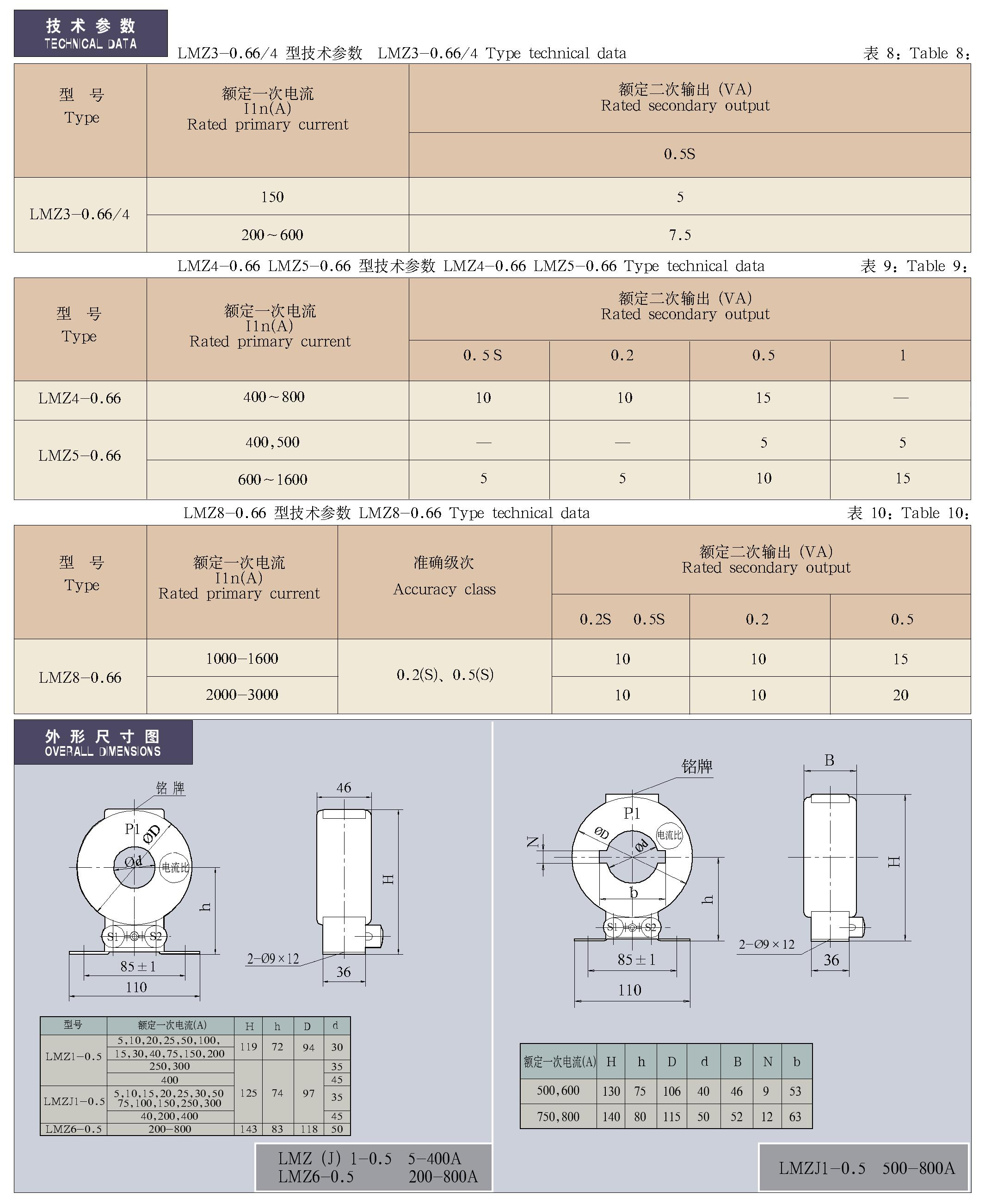 LMZ(J)1(2、3、4、5、6、8)-0.5(0.66)/3(4)系列电流互感器