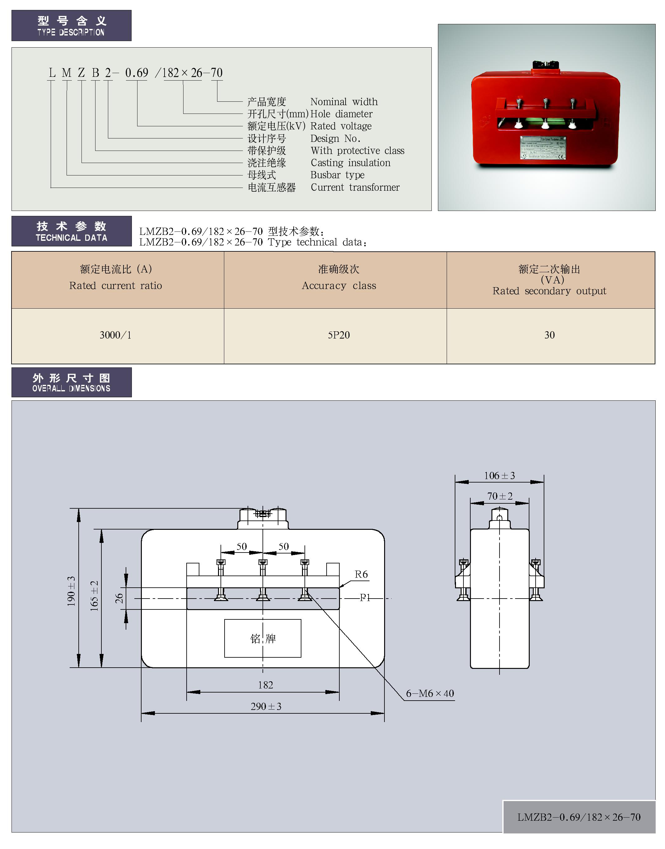 - LMZB2-0.69/182×26-70型干式变压器配套用电流互感器
