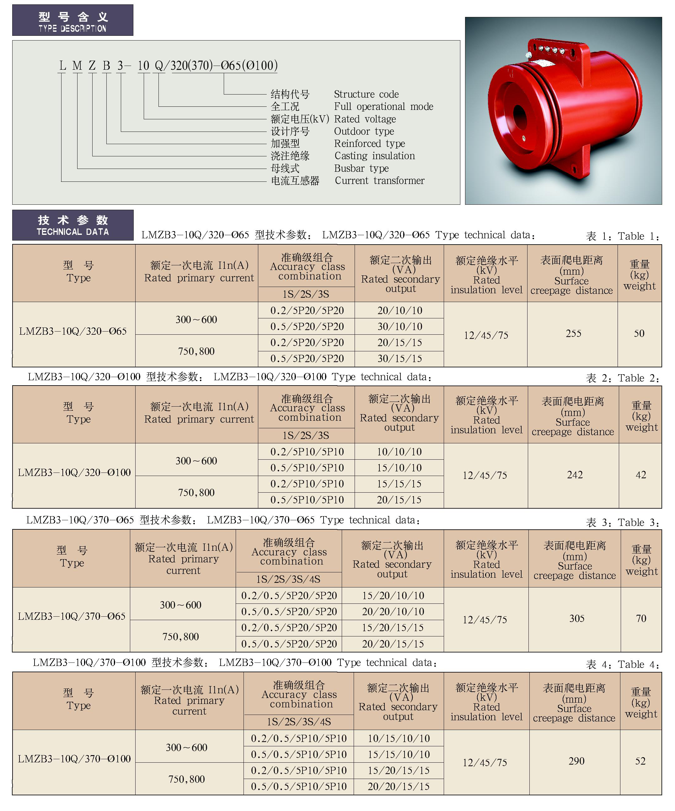 LMZB3-10Q/320(370)-φ65(φ100)系列干式变压器配套用电流互感器