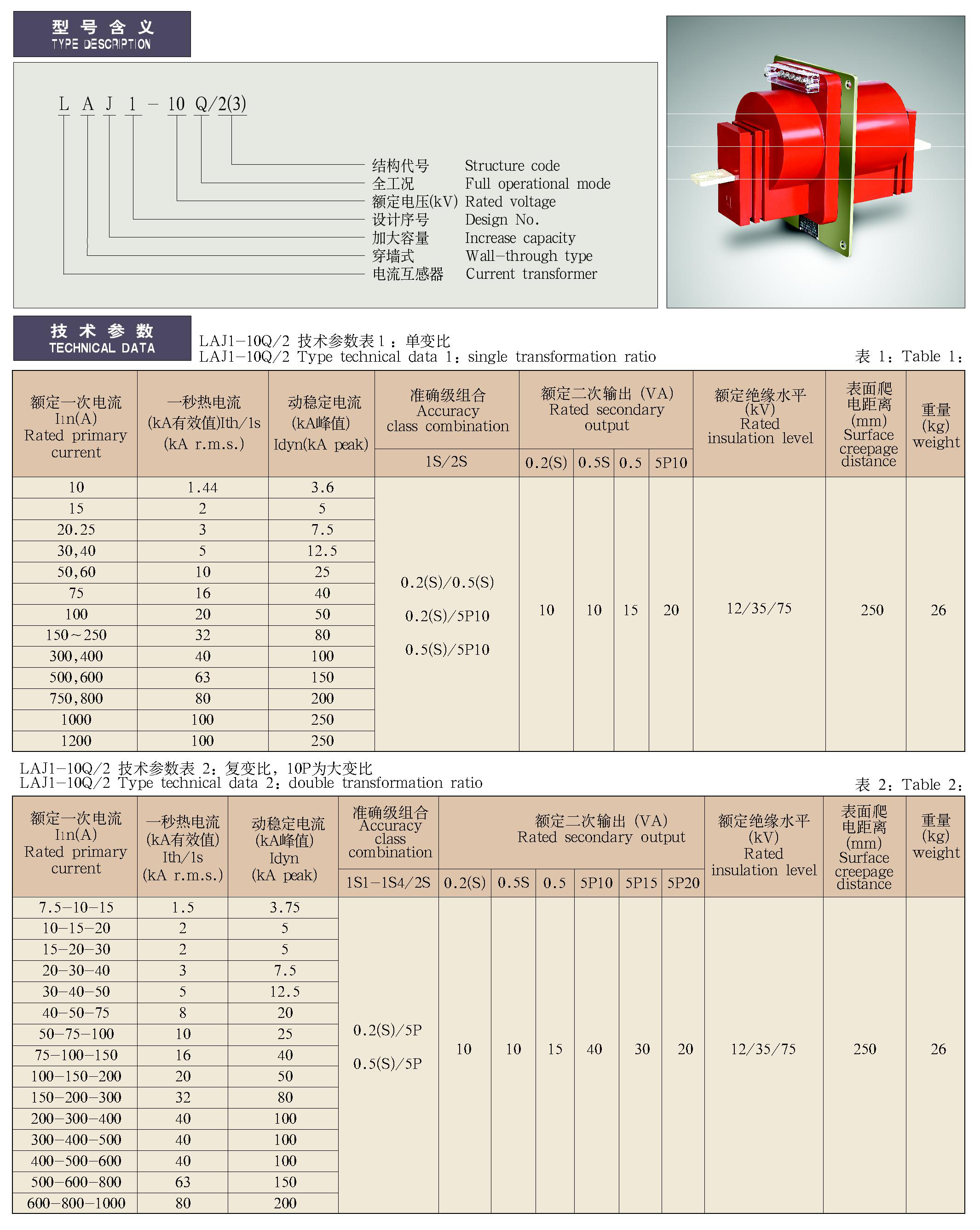 - LAJ1-10Q2(3)系列干式变压器配套用电流互感器