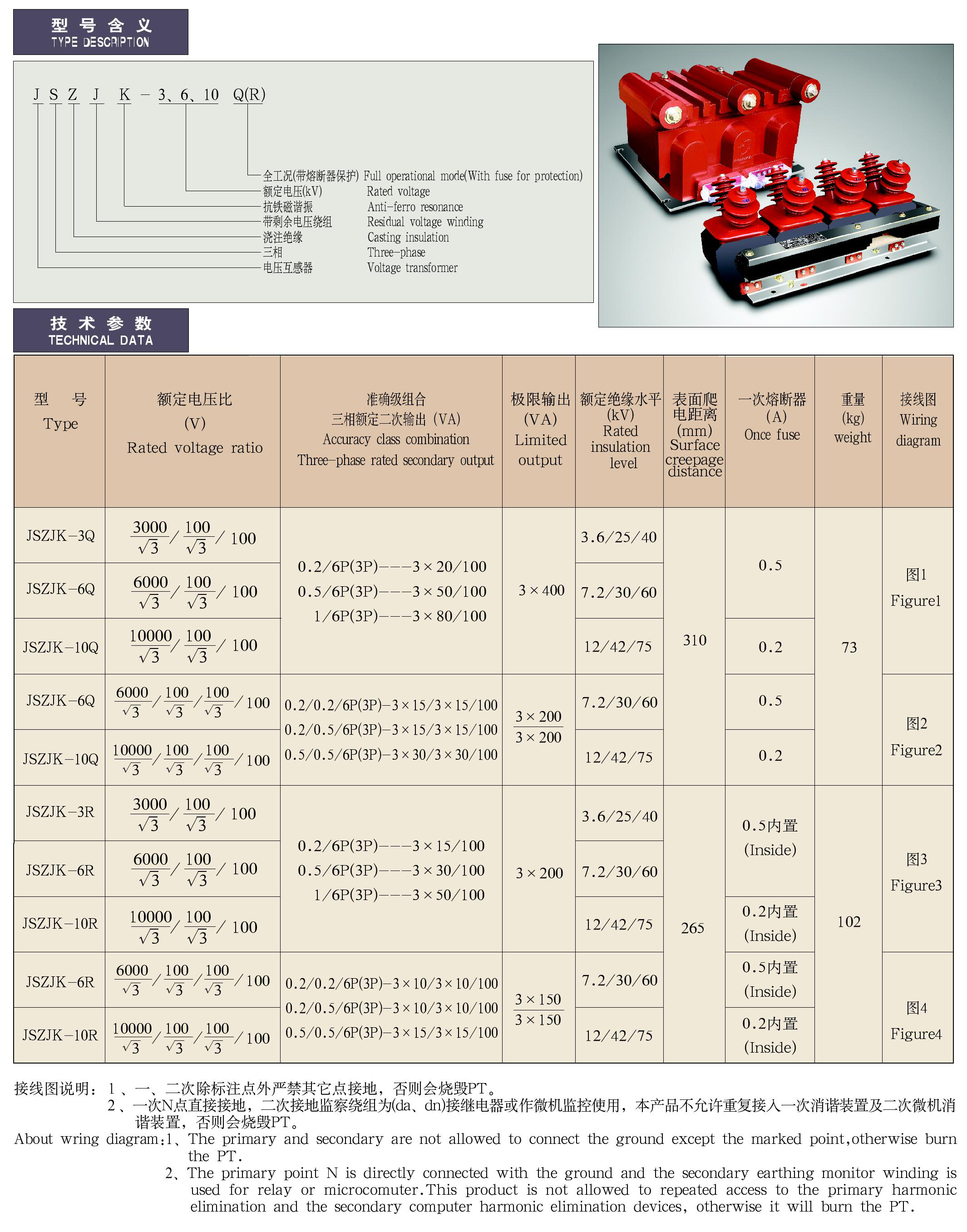 - JSZJK-3、6、10Q(R)系列抗铁磁谐振三相电压互感器