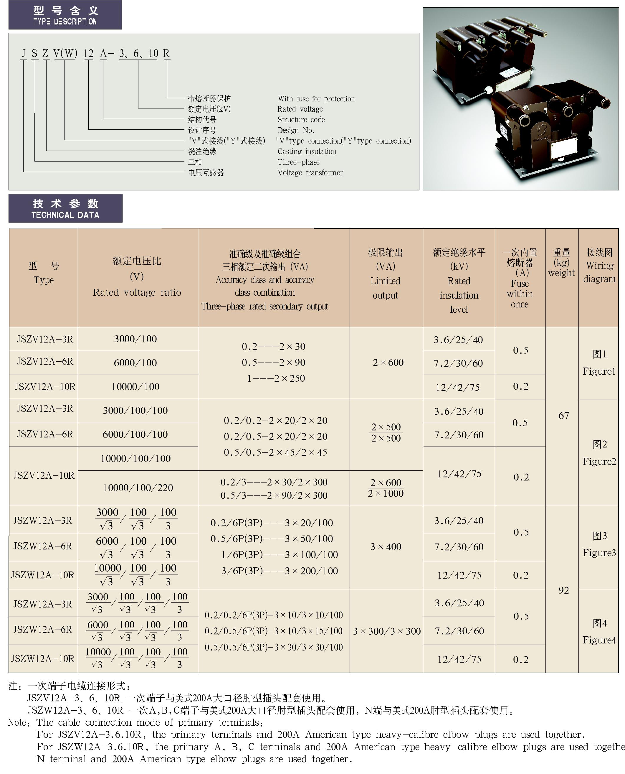 JSZV(W)12A-3、6、10R系列全封闭肘头座式带熔断器户内三相电压互感器