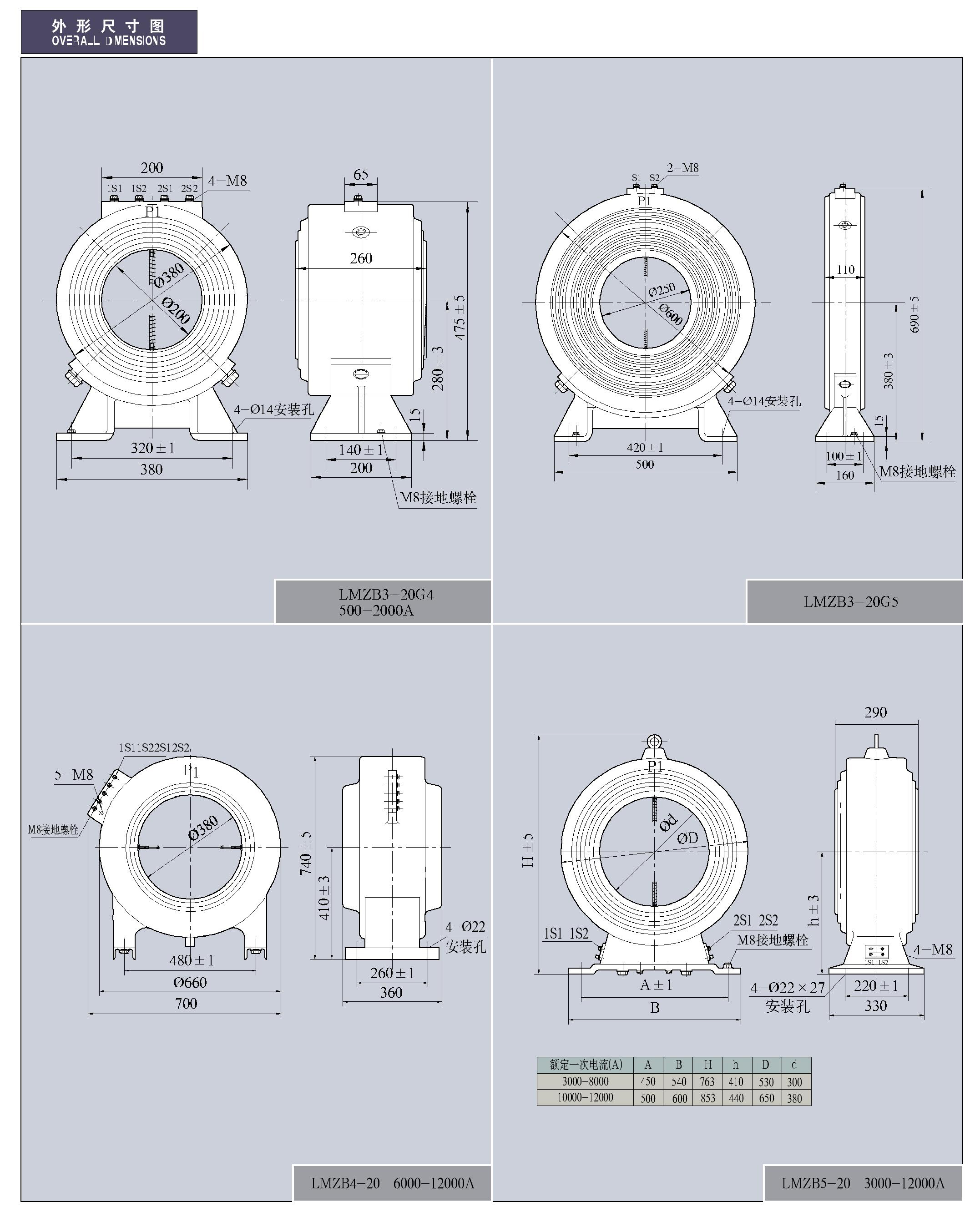 - LMZB(T)2(3、4、5、6、8)-20(G1、3、4、5、7、8)/2(3、4)φ180(200)系列敞开母线式电流互感器
