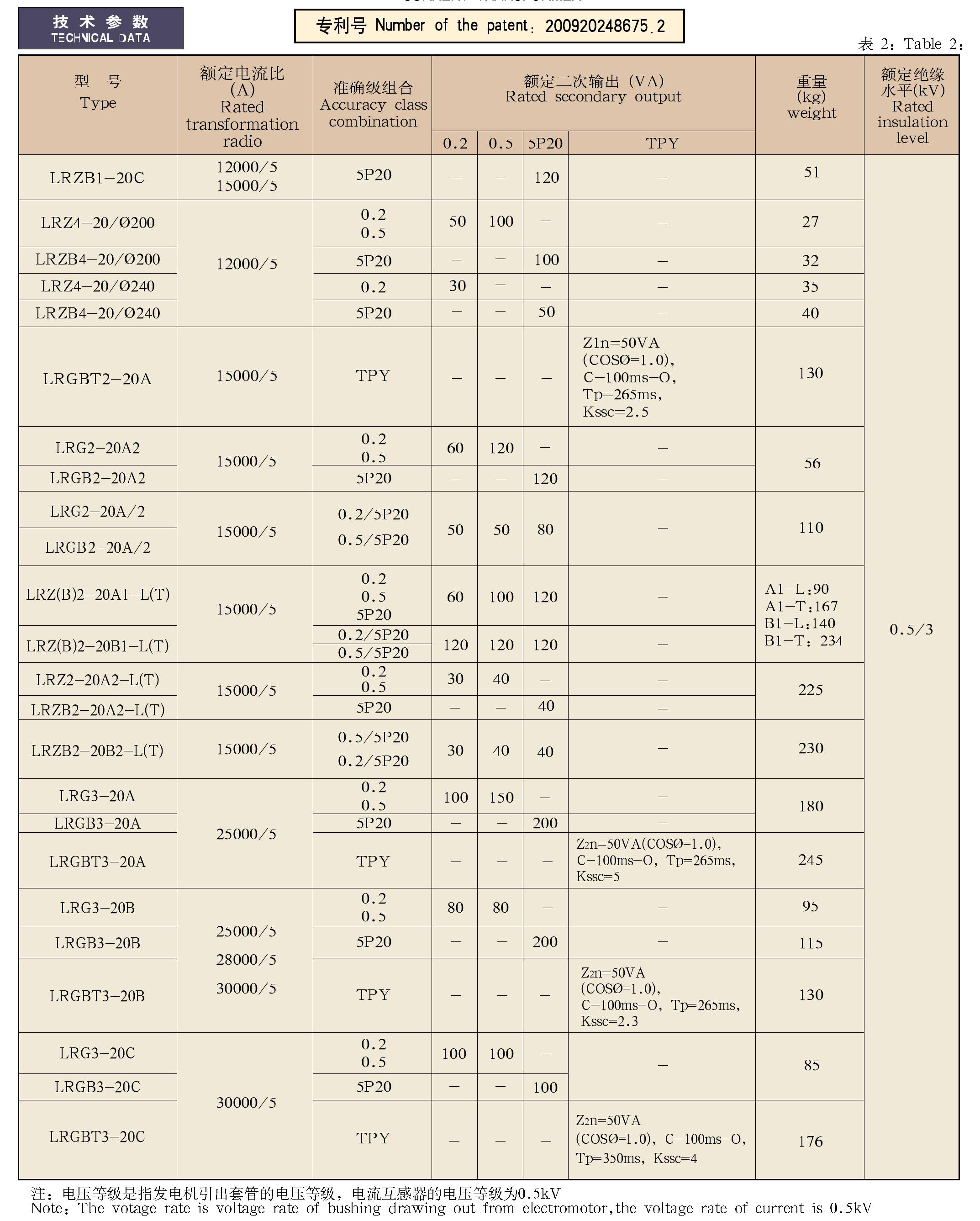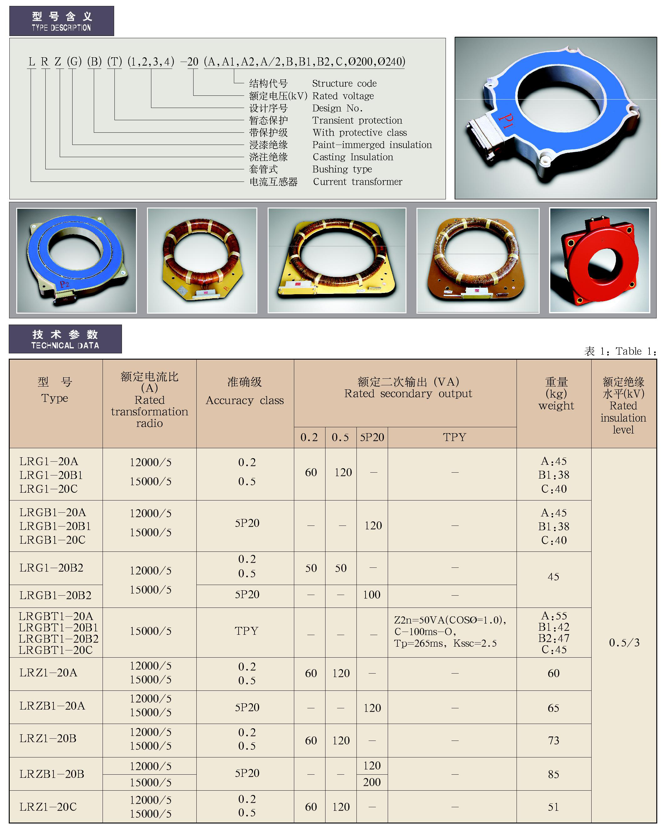 LRZ(G)(B)(T)(1、2、3、4)-20(A、A1、A2、A/2、B、B1、B2、C、φ200、φ240)套管式电流互感器