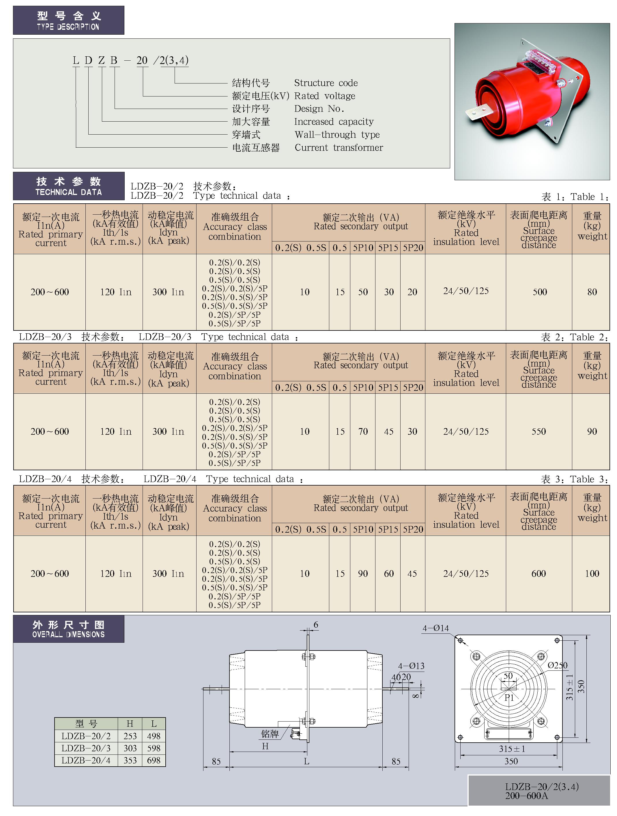 - LDZB-20/2(3、4)系列干式变压器配套用电流互感器