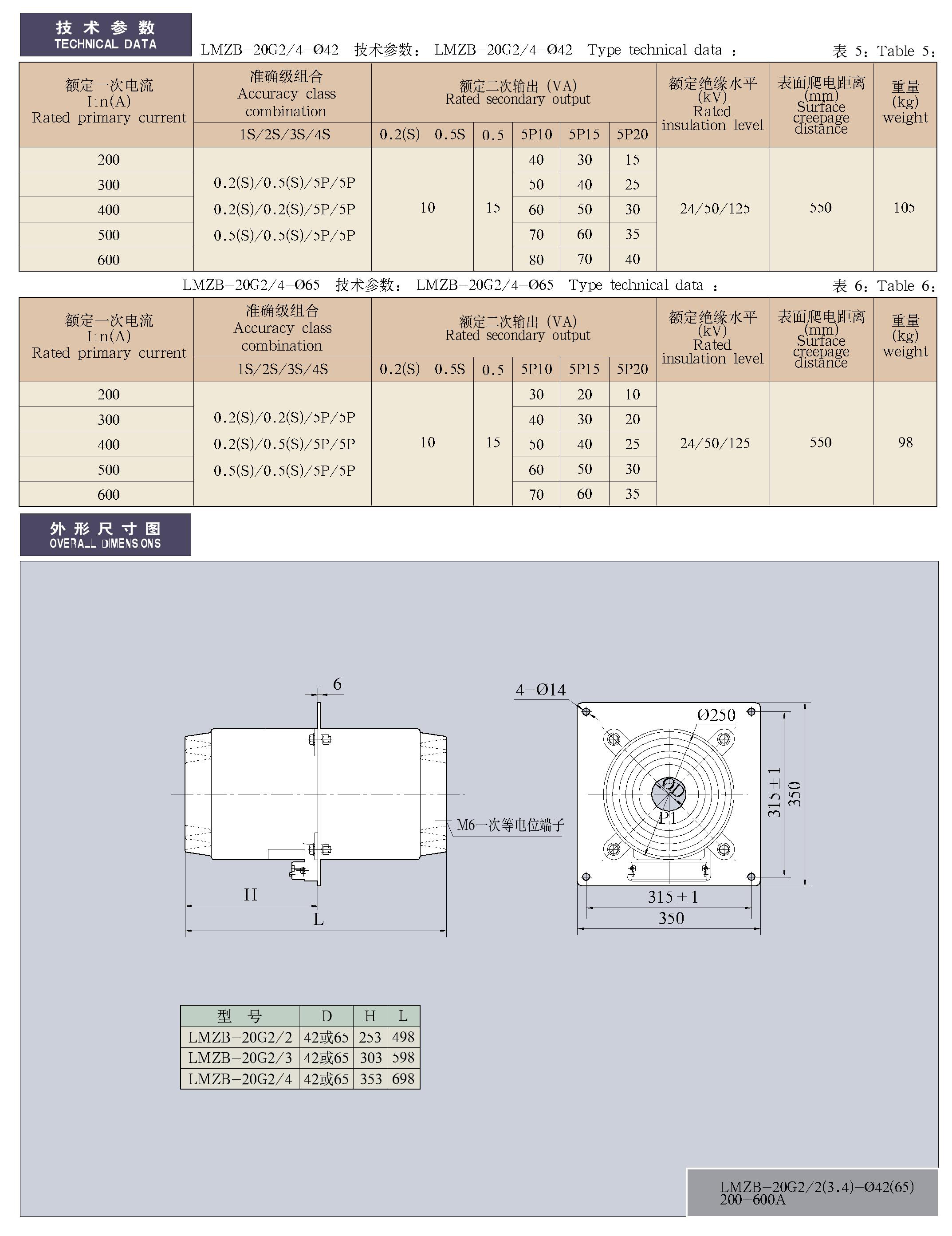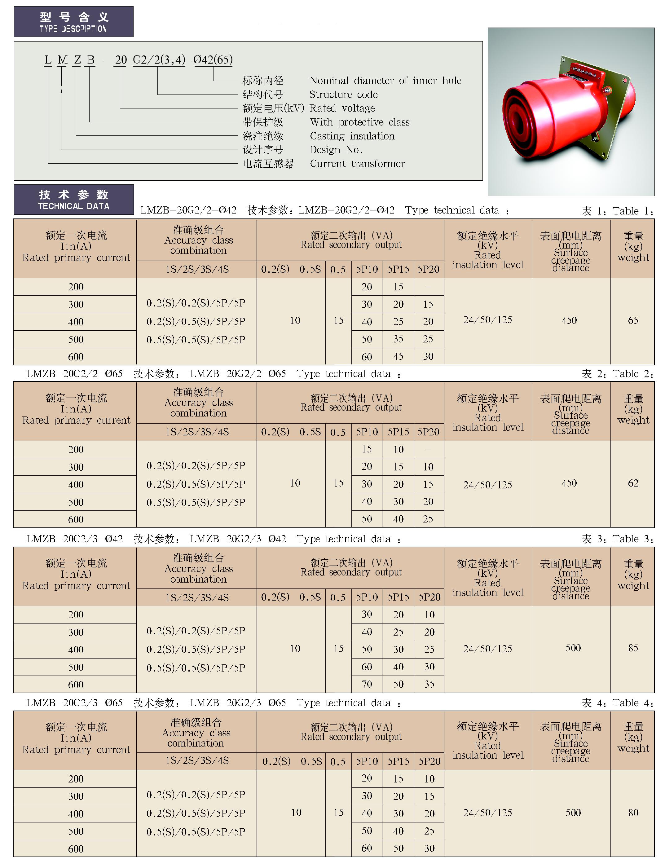 - LMZB-20G2/2(3、4)-φ42(65)系列干式变压器配套用电流互感器