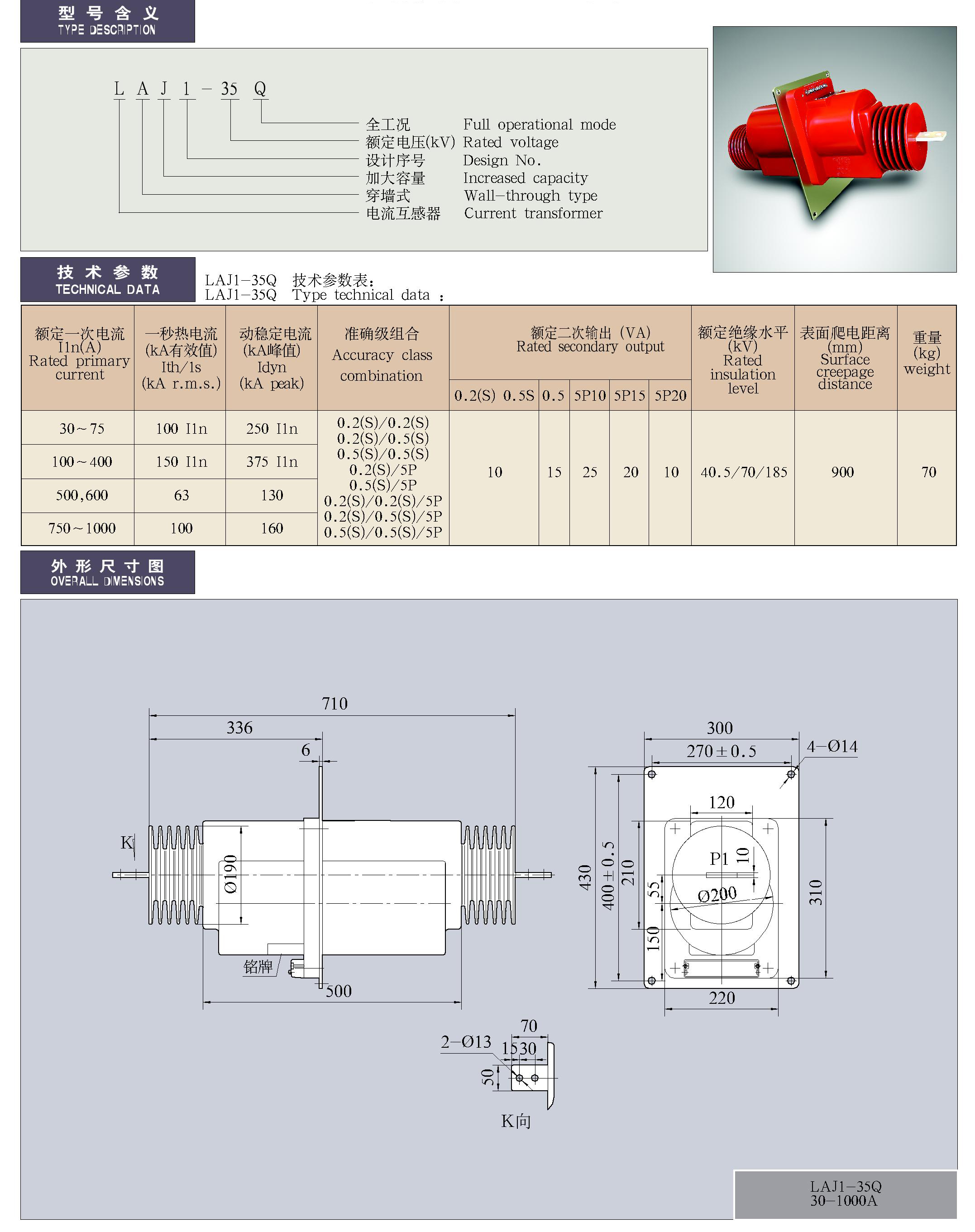 - LAJ1-35Q型干式变压器配套用电流互感器