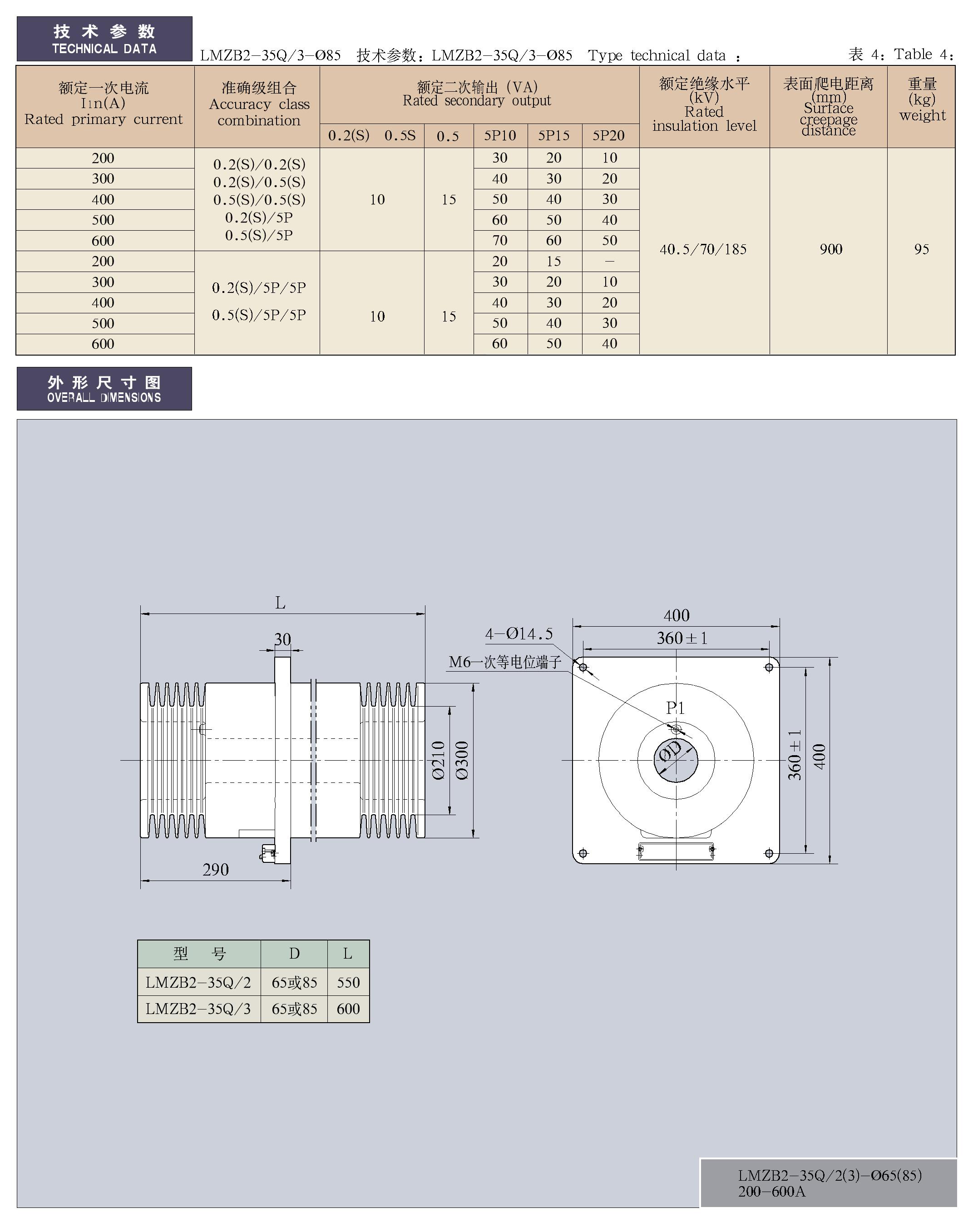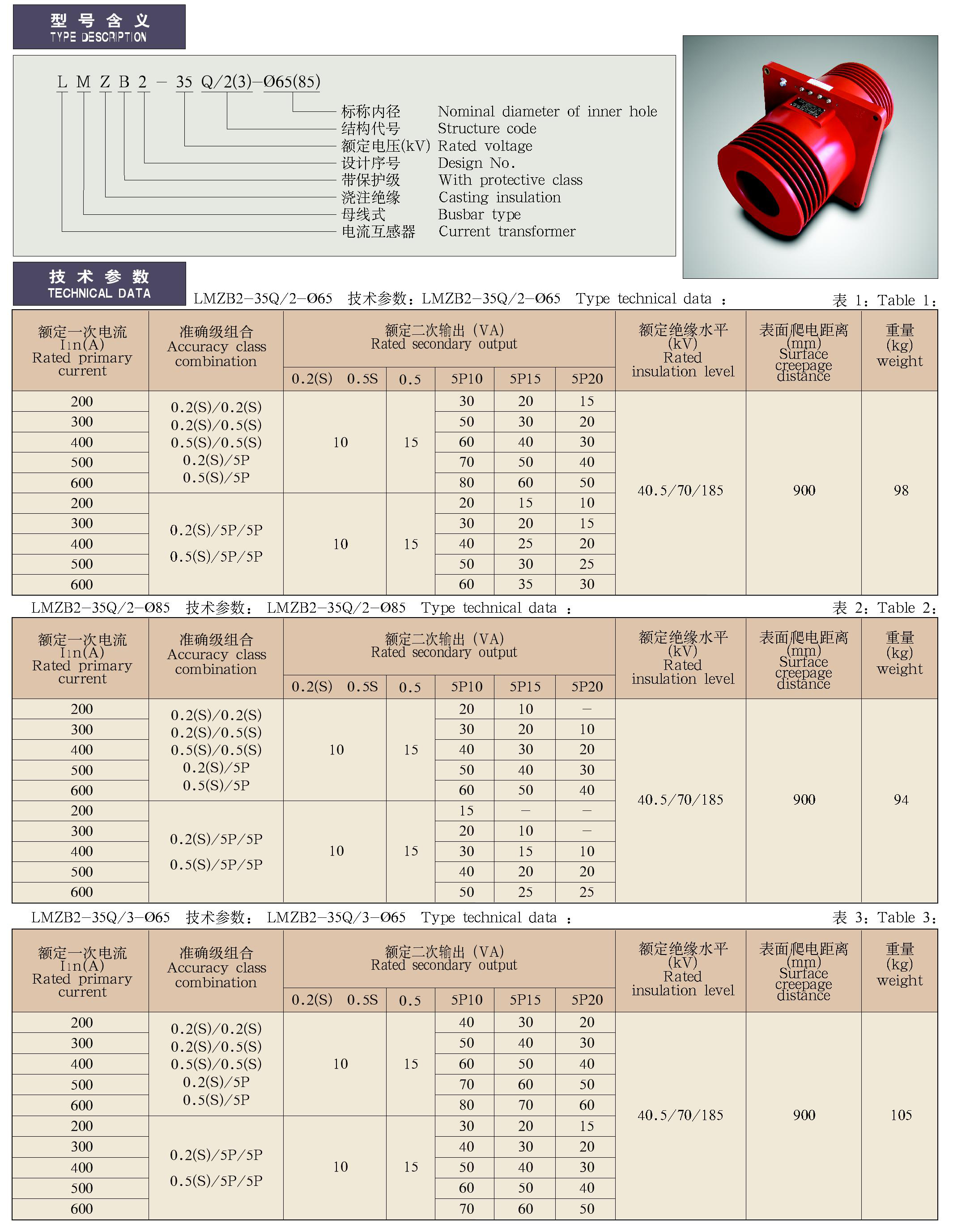 - LMZB2-35Q/2(3)-φ65(85)系列干式变压器配套用电流互感器