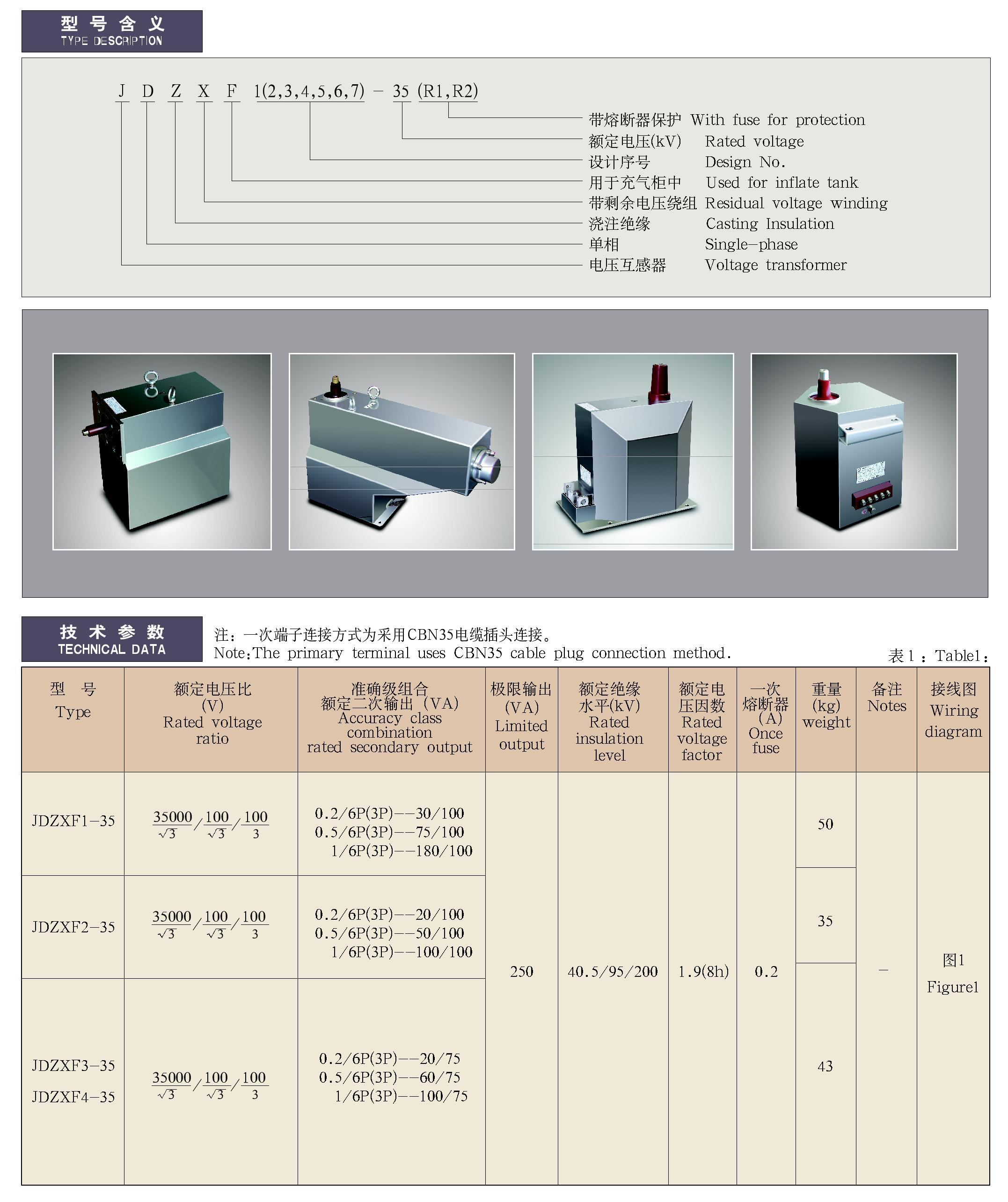 - JDZXF1(2、3、4、5、6、7)-35(R1、R2)系列全封闭金属铠资插座式户内单相气体绝缘柜用电压互感器