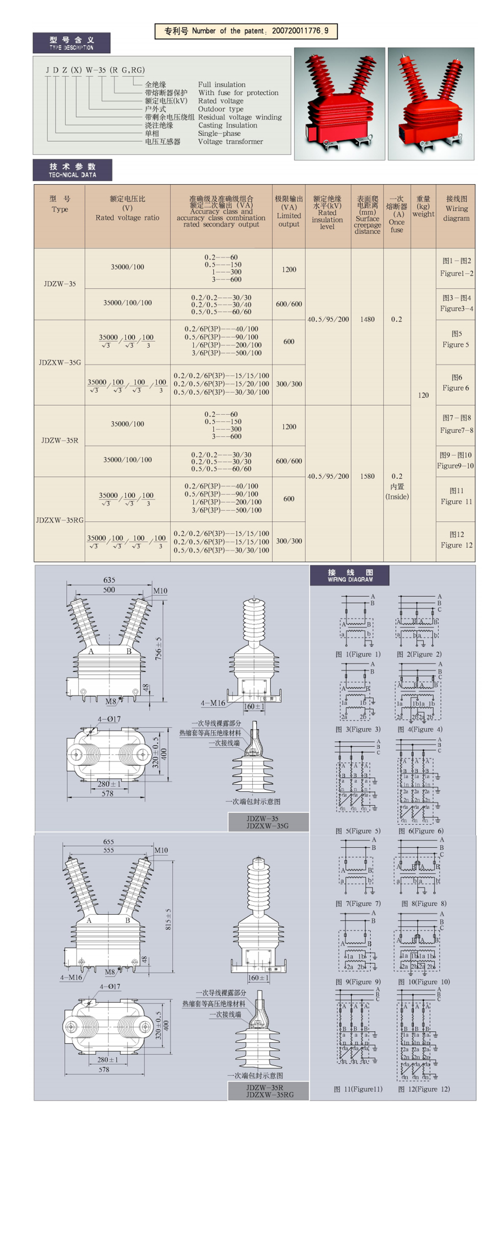 - JDZ(X)W-35(R、G、RG)型全封闭户外单相电压互感器