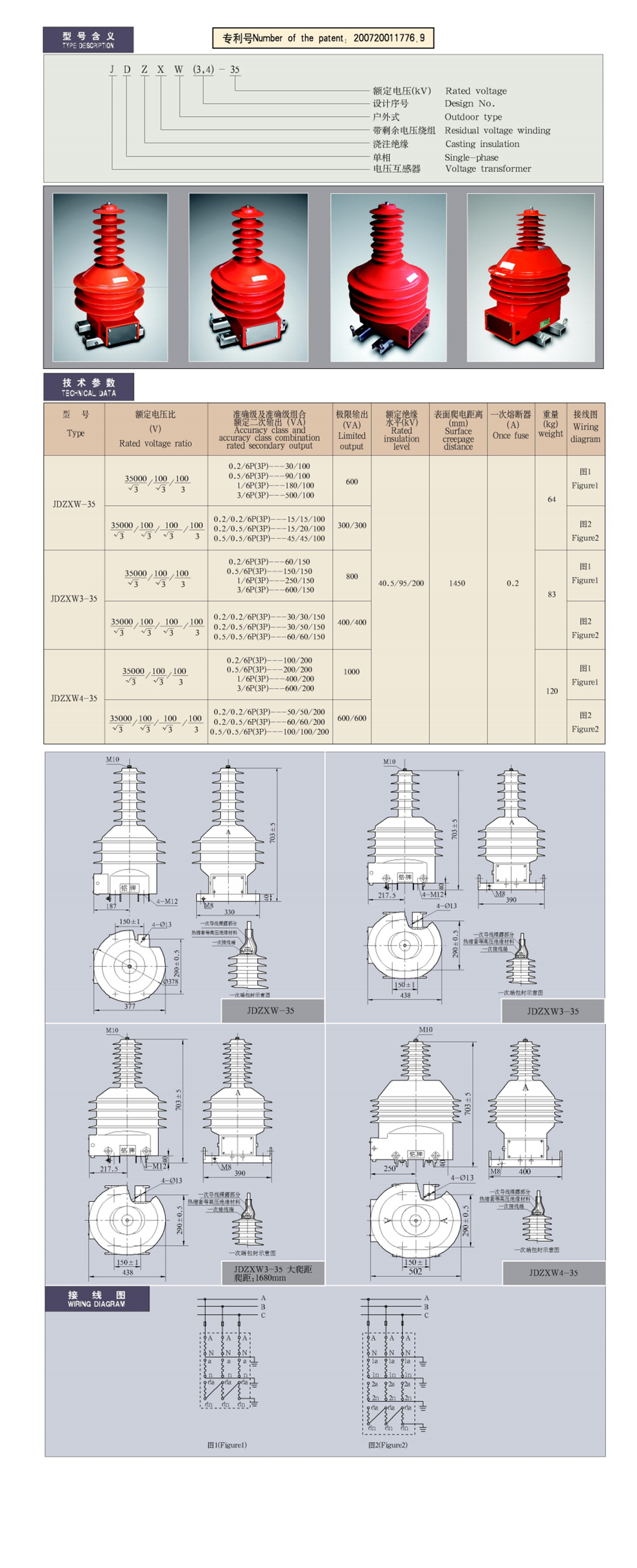 JDZXW(3、4)-35型全封闭户外单相电压互感器