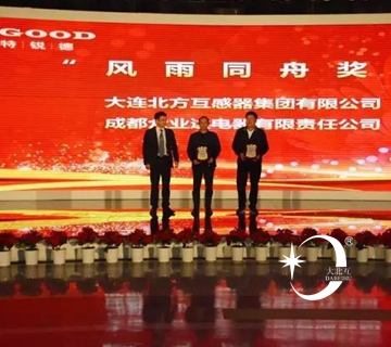 会上,特锐德向在过去的一年里,积极致力于双方发展的20家优秀供应商分别颁发了新生力量奖,优质服务奖,质量信得过奖,康洁公平奖,责任担当奖,风雨同舟奖,战略支持奖。大北互以其一流的企业管理,一流的产品品质,一流的专业服务赢得风雨同舟大奖。公司销售副总阎寿红从特锐德执行总裁屈东明手中接过荣誉奖牌。