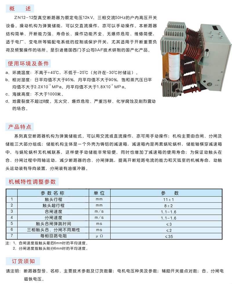 - ZN12-12型户内高压真空断路器