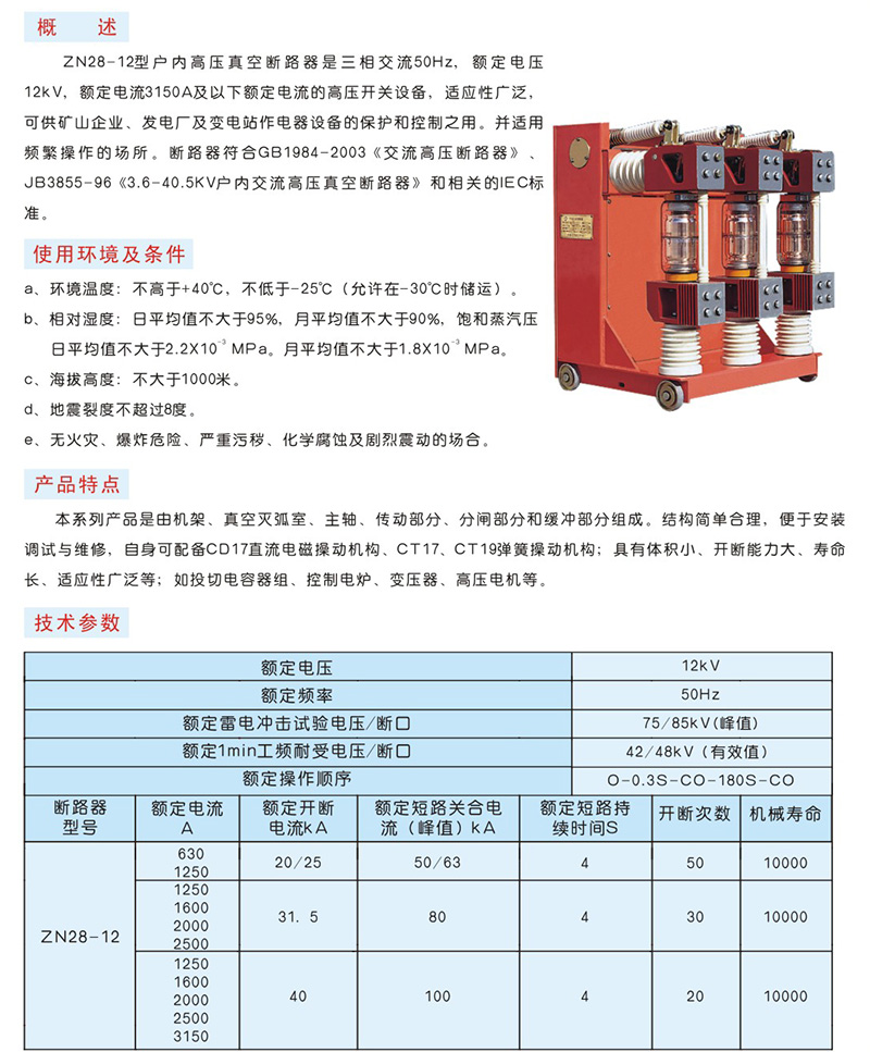 - ZN28-12型户内高压真空断路器