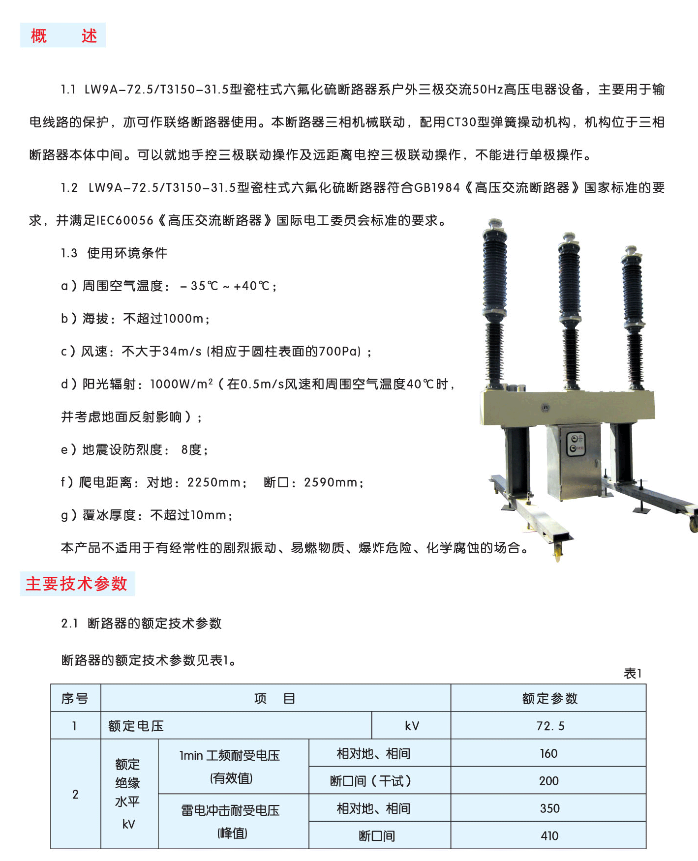 - LW9A-72.5型瓷柱式六氟化硫断路器