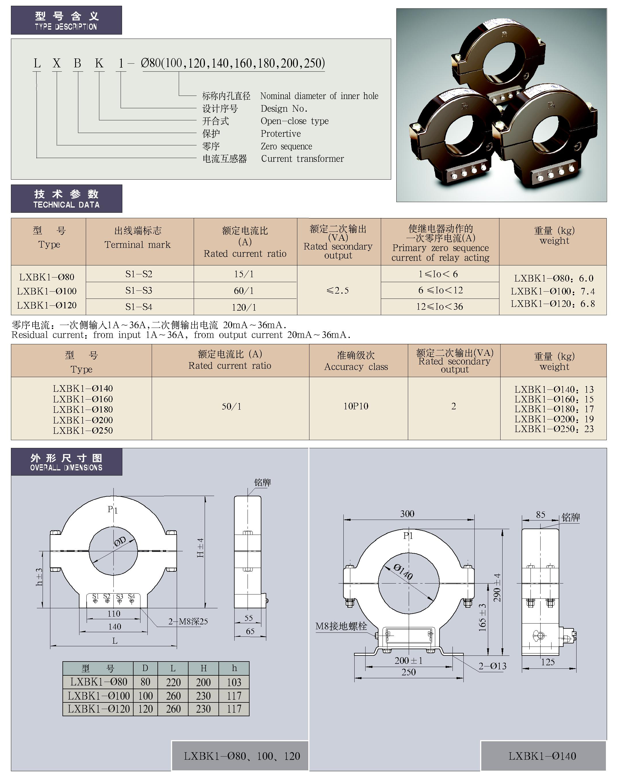 LXBK1-φ80(100、120、140、160、180、200、250)系列零序电流互感器