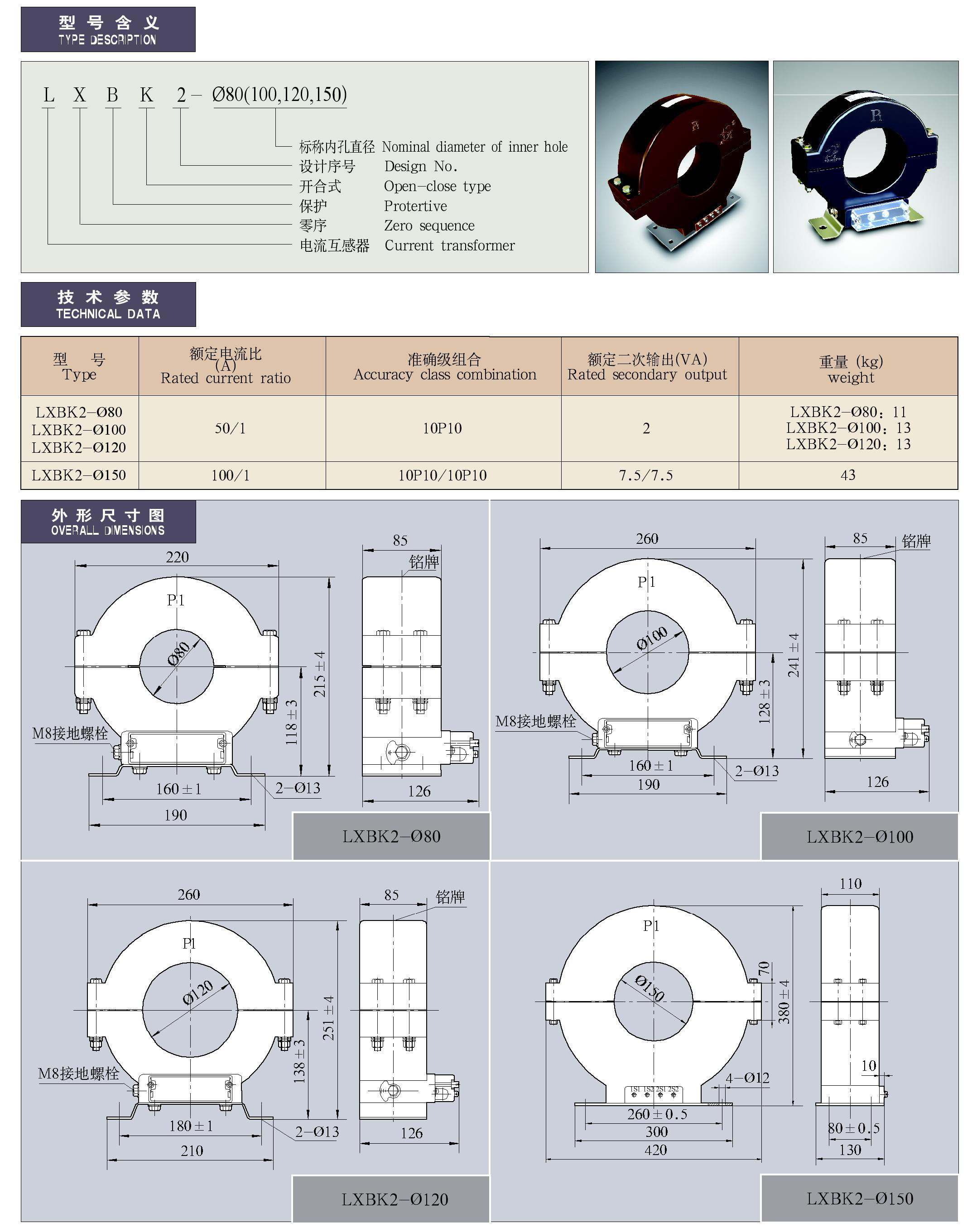 LXBK2-φ80(100、120、150)系列零序电流互感器