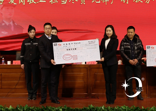 区委常委,宣传部长刘志林宣读中共大连市普兰店区委《关于开展向120、110先进集体学习活动的决定》。徐德成代表企业现场定向捐款五十万元,用于购置救护车。
