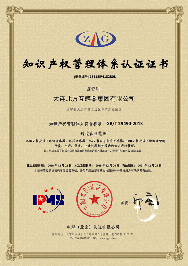 12月18日,大连北方互感器集团有限公司(简称大北互)举行首次知识产权贯标认证会议,中规(北京)认证有限公司受托对大北互知识产权管理体系建设进行为期三天科学全面的评审。