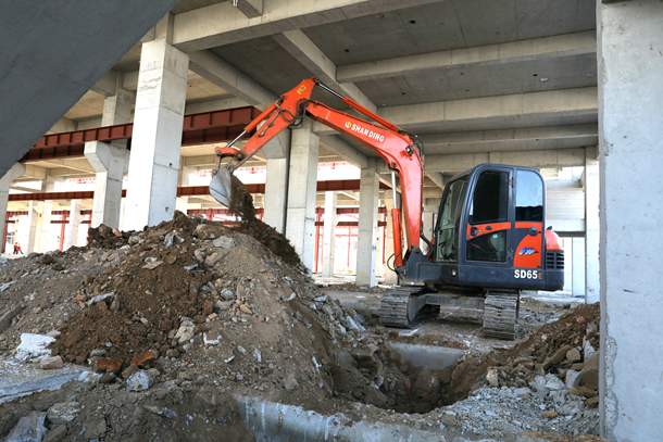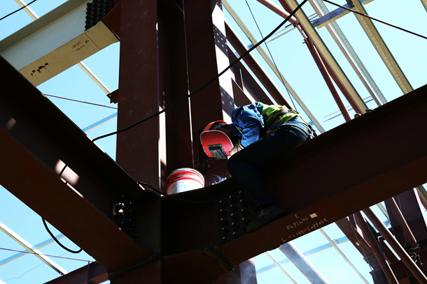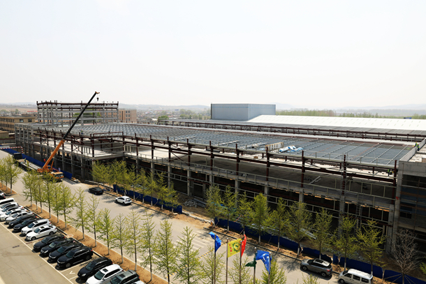 目前,土建工程已完成建设总量的85%,钢结构工程梁、柱、檩条等主次结构基本完成,墙面板、屋面板等维护系统即将开始,土建和钢结构施工作业预计在7月末全部完成。