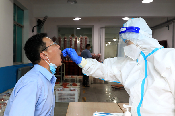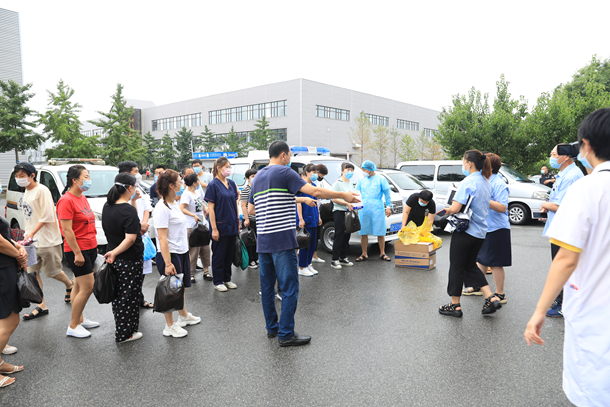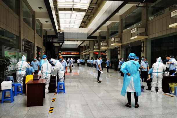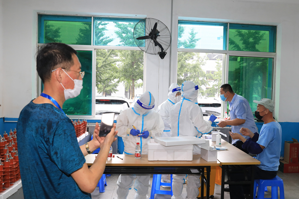 8月1日,普兰店区丰荣卫生院20名“白衣战士”冒雨奔赴大连北方互感器集团(简称大北互),人员分成5个小组,分别进入5个采样点,同时进行核酸采样工作。集团科学组织,精准保障,与前来采样的工作人员密切配合,用时1个多小时,顺利完成1300多名员工的核酸采样工作,助力早日打赢大连疫情,全面恢复正常经济社会秩序,广大市民全面恢复正常工作和生活。